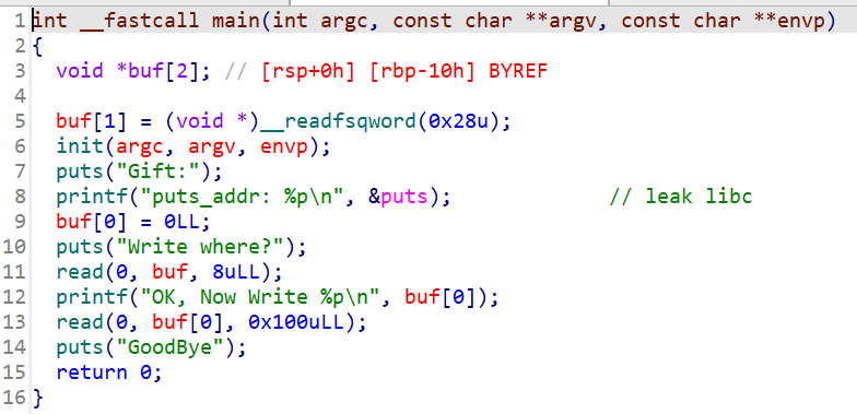 main_addr = int(p.recv(12), 16) # 这个实际上可以不用,看下面是如何利用的